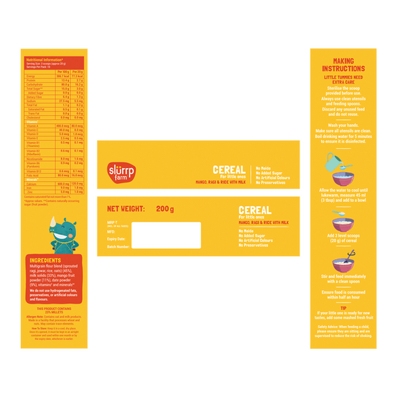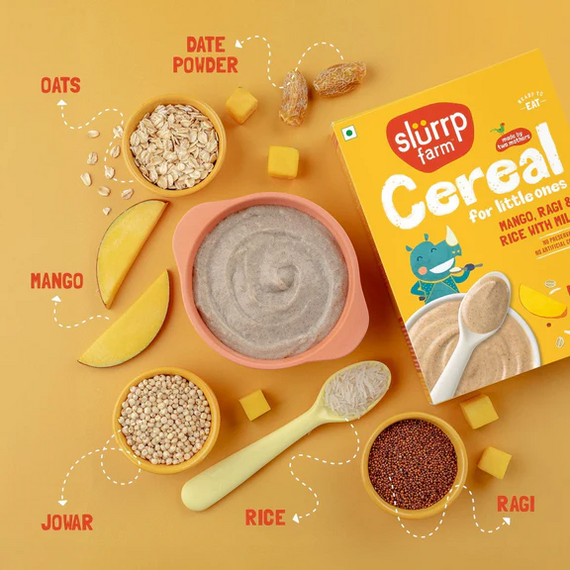 Mango, Ragi and Rice cereal with milk