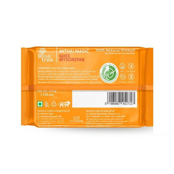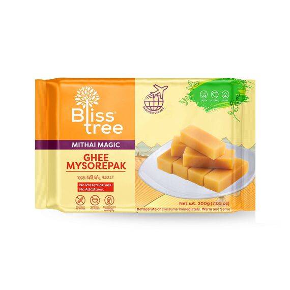 Indulge in the rich and aromatic flavors of India with Bliss Tree's Ghee Mysore Pak! Made with love and tradition, each bite of this decadent Indian sweet will transport you to a land of blissful delight. Our sweets are freshly lifted via air to ensure maximum freshness, free from preservatives or additives. With our new packaging, it's not just a treat for yourself but also the perfect gift for your loved ones. Simply warm and serve for an authentic taste experience that will leave you craving more!