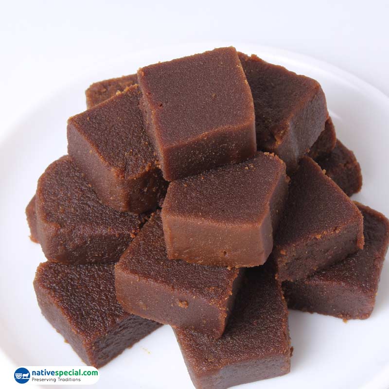 Specialty: This Palm Jaggery Mysorepak is made with original Palm Jaggery from the regions of Papanasam and Thoothukudi. The speciality of this sweet is its Grand and unique taste. As the sweetener used is Palm Jaggery it gives a unique taste and flavor, thus providing a better taste than the regular mysorepak made with white sugar. Though it is not a traditional sweet the addition of traditional sweetener Palm Jaggery makes it more healthier. A perfect grand sweet for Kids, Adults and Gifting purpose.